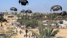 이스라엘 ‘생색내기’ 공중 구호품 투하에 가자 주민들 압사·부상