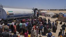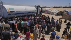 ▲ 지난 19일(현지시간) 가자지구 남부 칸유니스 구호소 물탱크 트럭 앞에 물을 받으려고 모인 팔레스타인 주민들. 팔레스타인- 2025.07.22 04:45