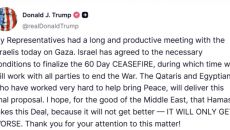 트럼프 “이스라엘, 가자지구 60일 휴전 동의...하마스도 수용하라”