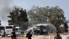 [포토] 버스 화재 진압하는 이스라엘 소방관들
