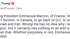 도널드 트럼프 미국 대통령이 이스라엘과 이란의 휴전을 위해 주요 7개국(G7) 정상회의 일정을 단축하고 급거 귀국했단 에마뉘엘- 2025.06.17 14:45