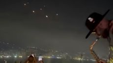 (서울=뉴스1) 김경민 기자 = 이스라엘의 선제공격을 받은 이란이 보복 공격으로 발사한 미사일이 이스라엘에 떨어지는 장면을 바- 2025.06.16 16:22
