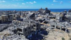 ▲ 2년간의 전쟁으로 황폐해진 가자시티 이스라엘과 팔레스타인 무장정파 하마스가 트럼프 미국 대통령이 제안한 가자지구 평화구상의- 2025.10.16 10:37