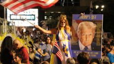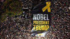 [사진] 트럼프 사진 들고 ‘인질 석방 환영’