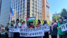 시민단체, 이스라엘 대사관 앞에서 “구금 해제하라” 요구 한국인 1명을 포함한 활동가들을 태우고 가자지구로 향하던 선박이 이스- 2025.10.08 15:30