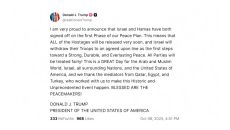 [속보] 트럼프 "사망자 포함 모든 이스라엘 인질 13일 석방될 것"