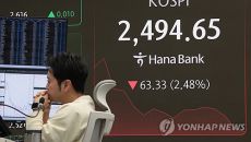 (서울=연합뉴스) 곽윤아 기자 = 코스피가 공매도 재개 첫날인 31일 장 초반 단숨에 2,490대로 밀려났다. 이날 오전 9시- 2025.03.31 09:33