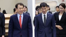 [서울=뉴스핌] 정일구 기자 = 이복현 금융감독원장(왼쪽)과 정은보 한국거래소 이사장이 19일 오전 서울 여의도 한국거래소 홍- 2025.03.19 11:33