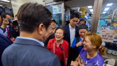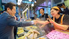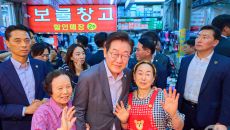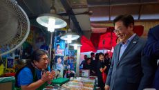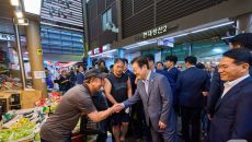 (서울=뉴스1) 허경 기자 = 이재명 대통령이 17일 성남시 태평동 현대시장을 방문해 상인들과 인사하고 있다. (대통령실 제공- 2025.09.17 19:00