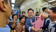 (서울=뉴스1) 허경 기자 = 이재명 대통령이 17일 성남시 태평동 현대시장을 방문해 시민들과 기념촬영을 하고 있다. (대통령- 2025.09.17 19:00
