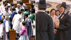 ■ '한복' 민주 vs '상복' 국힘…국회 개회식 복장까지 대치양상 더불어민주당과 국민의힘은 1일 열린 정기국회 개회식에 각각- 2025.09.01 18:00