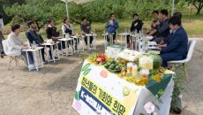[서울=뉴스핌] 이재명 대통령이 16일 세종시 전동면 조일농원에서 열린 청년 농업인 간담회에서 참석자과 대화를 나누고 있다.- 2025.09.16 21:11
