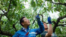 [서울=뉴스핌] 이재명 대통령이 16일 세종시 전동면 조일농원을 찾아 가지치기를 하고 있다. 이날 이 대통령은 청년 농업인을- 2025.09.16 21:11