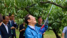 [서울=뉴스핌] 이재명 대통령이 16일 세종시 전동면 조일농원을 찾아 가지치기를 하고 있다. 이날 이 대통령은 청년 농업인을- 2025.09.16 21:12