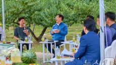 (서울=뉴스1) 허경 기자 = 이재명 대통령이 16일 세종시 전동면 조일농원에서 열린 청년 농업인 간담회에서 참석자들과 대화를- 2025.09.16 20:11
