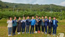 (서울=뉴스1) 허경 기자 = 이재명 대통령이 16일 세종시 전동면 조일농원에서 열린 청년 농업인 간담회에서 농업인들과 기념촬- 2025.09.16 20:11