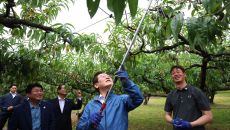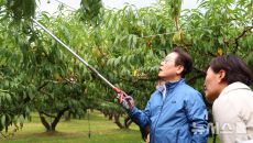 가지치기 체험한 李대통령 “청년 농업인에 투자 아끼지 않겠다”