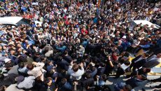 ▲ 남도문화벨트 골목골목 경청투어에 나선 민주당 이재명 대선 후보가 11일 전남 영암군 학산면 독천낙지거리를 찾아 지지자들에게- 2025.05.11 17:48