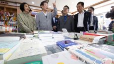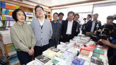 (강진=뉴스1) 이재명 기자 = 경청투어에 나선 이재명 더불어민주당 대통령 후보가 11일 오후 전남 해남군의 한 서점에서 상인- 2025.05.11 14:32
