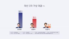 "3자 대결서 이재명 52.1% 김문수 31.1% 이준석 6.3%"