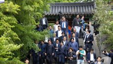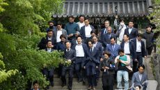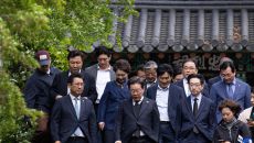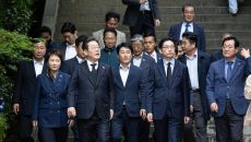 이순신장군 사당 참배 마치고 나오는 이재명