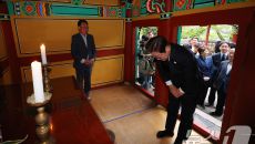 남해 충렬사 찾아 이순신 장군 사당 참배하는 이재명