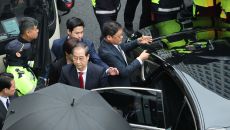 경호 속 당사 도착한 한덕수