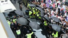 金 지지자 항의 속 당사 도착한 한덕수