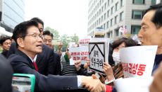 [서울=뉴스핌] 김문수 국민의힘 대선 후보 캠프 관계자들이 10일 서울 양천구 남부지방법원에서 21대 대통령 후보자 선출취소- 2025.05.10 13:46