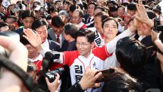 대구 지지자 인파에 둘러싸인 김문수 후보