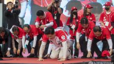[대구=뉴스핌] 최지환 기자 = 김문수 국민의힘 대선후보가 12일 오후 대구 중구 서문시장 유세현장에서 시민들에게 큰 절을 하- 2025.05.12 18:48
