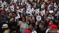 [대구=뉴스핌] 최지환 기자 = 12일 오후 대구 중구 서문시장 김문수 국민의힘 대선후보 유세현장에서 시민들이 태극기를 흔들고- 2025.05.12 18:47