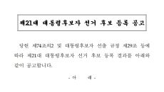 국민의힘 대선 후보 교체 공고 홈페이지에 공고