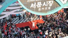 (대구=뉴스1) 김민지 기자 = 시민들이 12일 대구 중구 서문시장에서 김문수 국민의힘 대선 후보의 유세를 지켜보고 있다. (- 2025.05.12 18:33