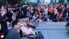이준석 개혁신당 대선후보 연설에 환호하는 시민들