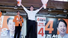 [서울=뉴스핌] 이길동 기자 =이준석 개혁신당 대선후보가 12일 오후 서울 중구 청계광장에서 열린 출정식에서 시민들에게 지지를- 2025.05.12 22:00