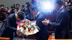 [서울=뉴스핌] 윤창빈 기자 = 김문수 국민의힘 대선 후보가 9일 오전 서울 여의도 국회에서 열린 의원총회에서 국민의례를 하고- 2025.05.09 12:50