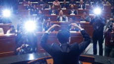 [서울=뉴스핌] 윤창빈 기자 = 김문수 국민의힘 대선 후보가 9일 오전 서울 여의도 국회에서 열린 의원총회에서 박수를 치고 있- 2025.05.09 12:50