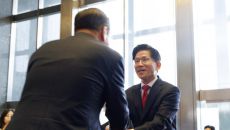 김문수 후보에게 고개숙여 인사하는 권성동 원내대표