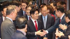 [포토]'박수받으며 의원총회 참석하는 김문수'