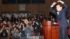 [이데일리 노진환 기자] 김문수 국민의힘 대선 후보가 9일 서울 여의도 국회에서 열린 의원총회에서 인사말을 하며 머리 위로 하- 2025.05.09 12:46