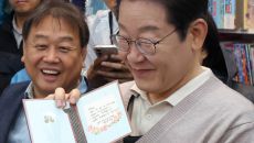 시민에게 받은 응원 메시지 펼쳐보는 이재명 민주당 대선후보
