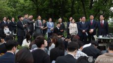 취재진 질문에 답하는 한덕수 대선 예비후보