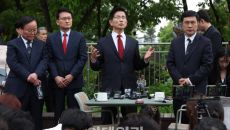 [포토]회동 마치고 질의에 답하는 한덕수 무소속 대선 예비후보