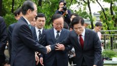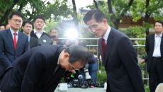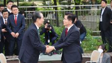 허리숙여 인사하는 한덕수.. 불편한 김문수