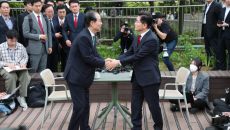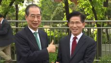 김문수 - 한덕수, '미소는 짓고 있지만'