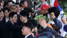김문수-한덕수 회동 종료...지지자들에게 손 들어보이며 퇴장하는 김문수