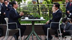 [서울=뉴스핌] 최지환 기자 = 김문수 국민의힘 대선 후보와 한덕수 예비후보가 8일 오후 국회 사랑재 카페에서 공개회동을 하고- 2025.05.08 18:11
