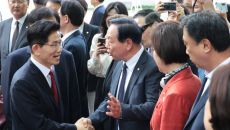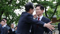 김문수·김문수, '단일화 회동' 마치고 포옹