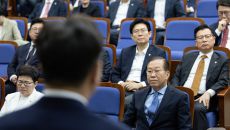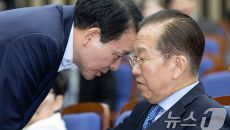 (서울=뉴스1) 이재명 기자 = 권영세 국민의힘 비상대책위원장과 성일종 의원이 8일 오후 서울 여의도 국회에서 열린 의원총회에- 2025.05.08 14:53